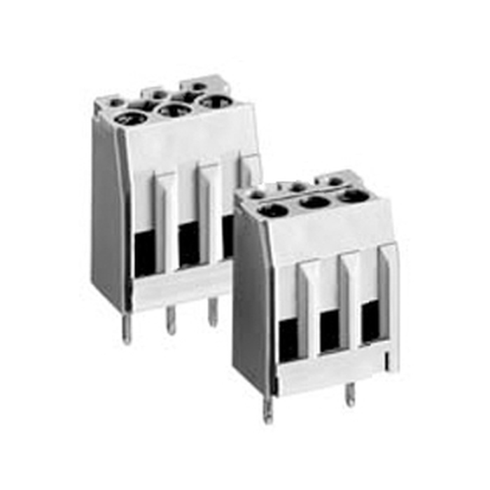 Клемма, горизонтальный подвод кабеля, на плату, шаг: 5.08 мм, 3 полюса, фиксация провода винтовая, исполнение: без маркировки, 300V, 10A, цвет: серый