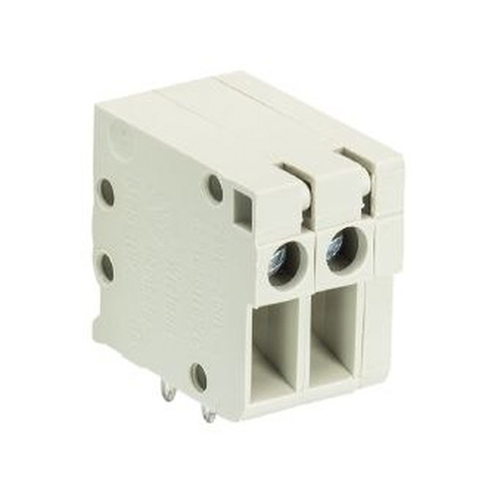 Клемма, горизонтальный подвод кабеля, на плату, шаг: 10 мм, 2 полюса, фиксация провода винтовая, исполнение: без маркировки, 250V, 16A, цвет: серый
