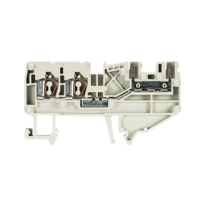 Клемма для подключения внешних модулей, тип фиксации провода: push-in, номинальное сечение: 2,5 мм кв., 20A, 400V, цвет: серый, тип монтажа: DIN35