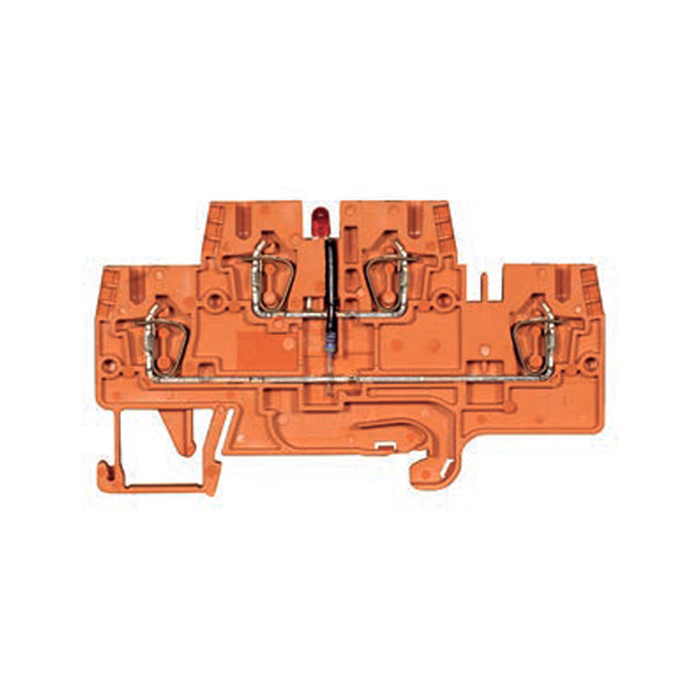 Этажная функциональная клемма, 2 этажа, тип фиксации провода: пружинный, номинальное сечение: 2,5 мм кв., 24A, ширина: 5 мм, цвет: оранжевый, тип монтажа: DIN35