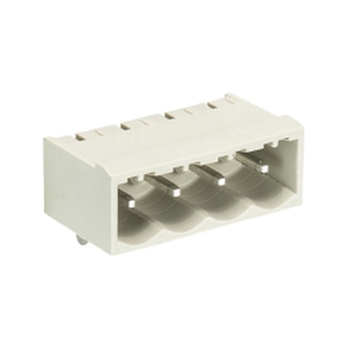 Вилочный разъем, горизонтальный, на плату, шаг: 5.0 мм, 4 полюса, фиксация на плате пайкой, исполнение: без маркировки, 300V, 12А, цвет: серый
