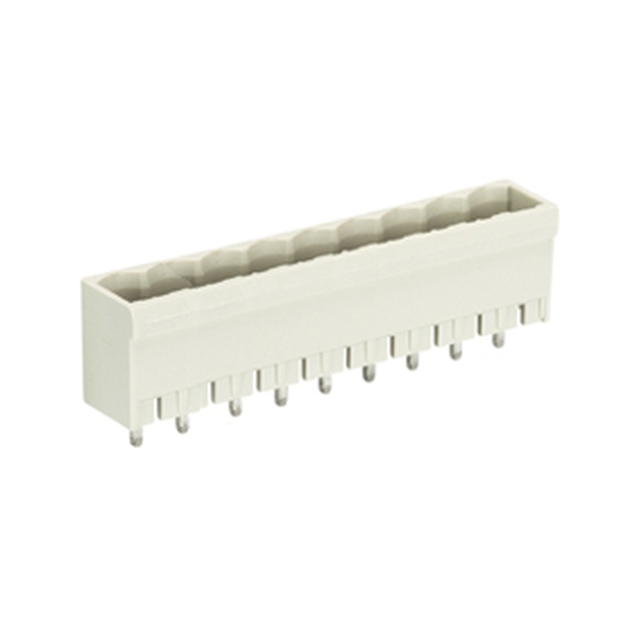 Вилочный разъем, горизонтальный, на плату, шаг: 5.08 мм, 10 полюсов, фиксация на плате пайкой, исполнение: без маркировки, без боковых стенок, 400V, 12А, цвет: серый