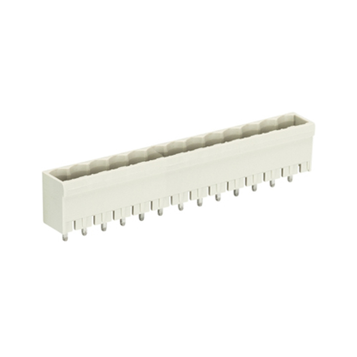 Вилочный разъем, вертикальный, на плату, шаг: 5.08 мм, 13 полюсов, фиксация на плате пайкой, исполнение: без маркировки, 300V, 12А, цвет: серый
