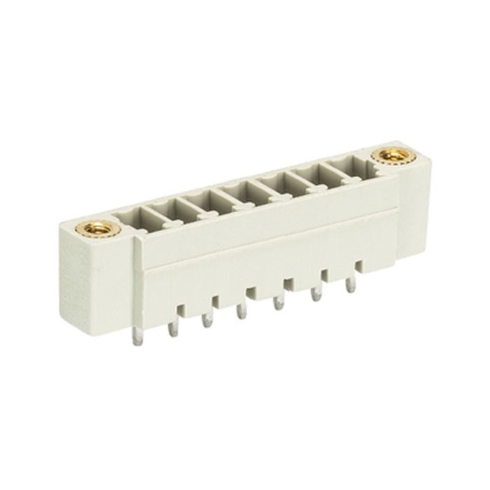 Вилочный разъем, горизонтальный, на плату, шаг: 3.81 мм, 8 фиксация на плате пайкой, исполнение: без маркировки, с монтажными фланцами, 250V, 8А, цвет: серый