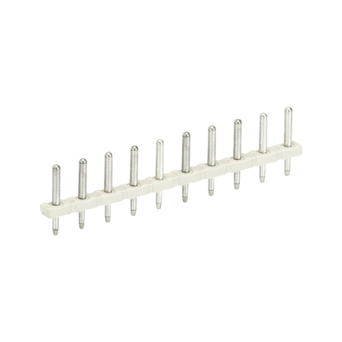 Штыревой контакт, вертикальный, на плату, диаметр штыря 1 мм, шаг 5 мм, 10 полюсов, фиксация на плате пайкой, 250V, 8А, цвет: черный, серия 8142 OB