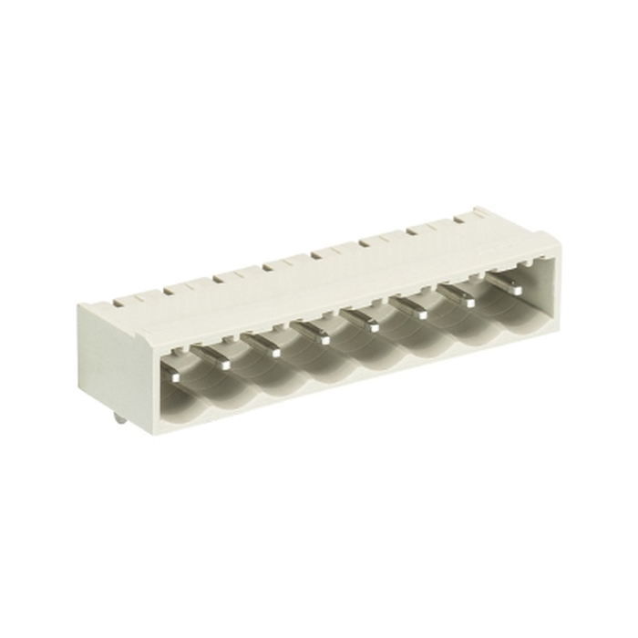 Вилочный разъем, горизонтальный, на плату, шаг: 5.0 мм, 8 полюсов, фиксация на плате пайкой, исполнение: без маркировки, 300V, 12А, цвет: серый