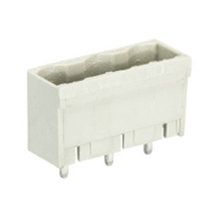 Вилочный разъем, вертикальный, на плату, шаг: 7.5 мм, 3 полюса, фиксация на плате пайкой, исполнение: без маркировки, 690V, 12А, цвет: серый