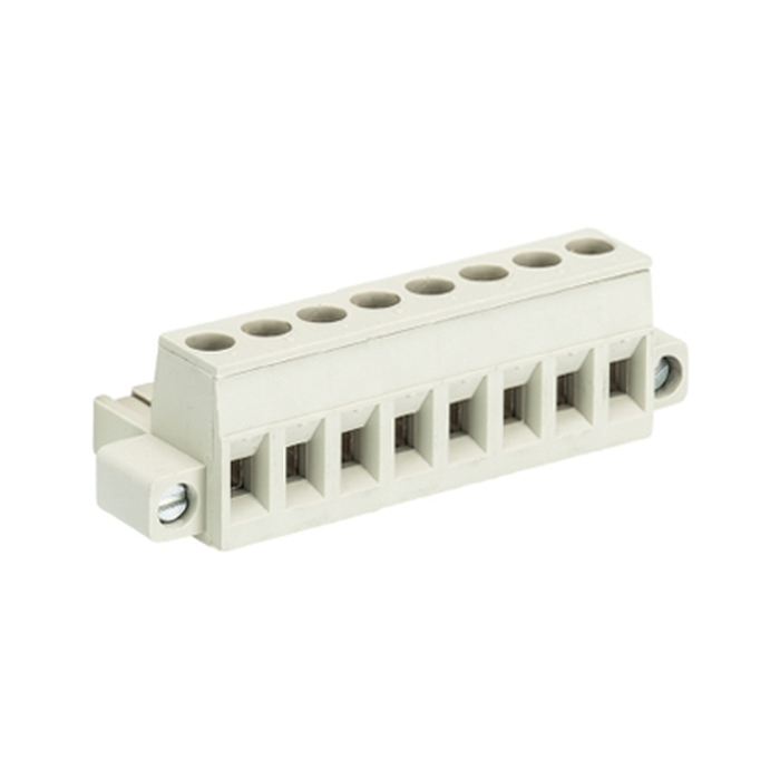 Розеточный разъем, прямой, на кабель, шаг: 5.08 мм, 8 полюсов, фиксация провода винтовая, исполнение: без маркировки, 400V, 12А, цвет: серый