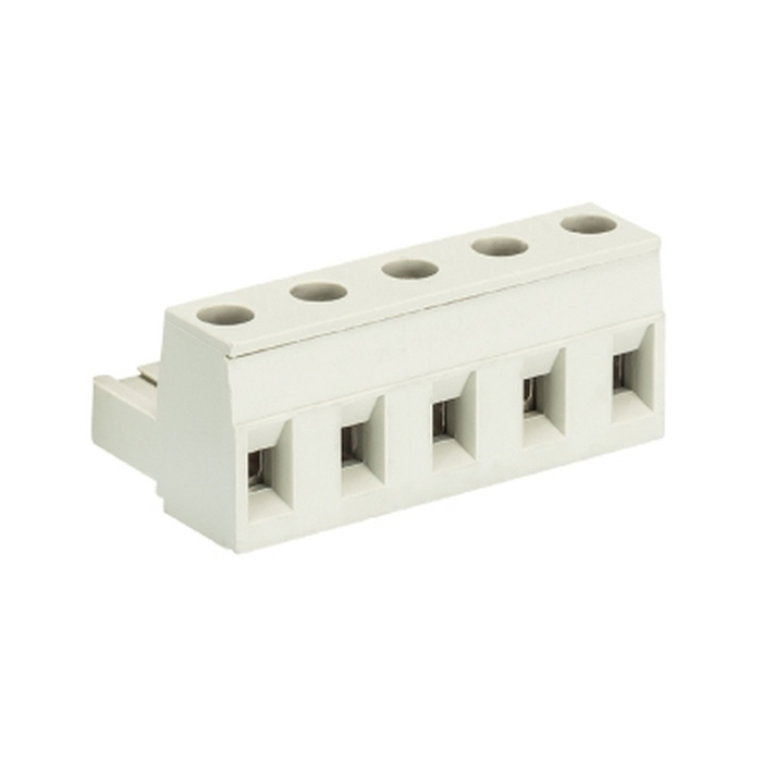 Розеточный разъем, прямой, на кабель, шаг: 5.08 мм, 5 полюсов, фиксация провода винтовая, исполнение: без маркировки, 400V, 12А, цвет: серый