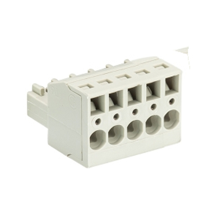 Розеточный разъем, прямой, на кабель, шаг: 3.5 мм, 5 полюсов, фиксация провода пружинная, исполнение: без маркировки, 250V, 8А, цвет: серый