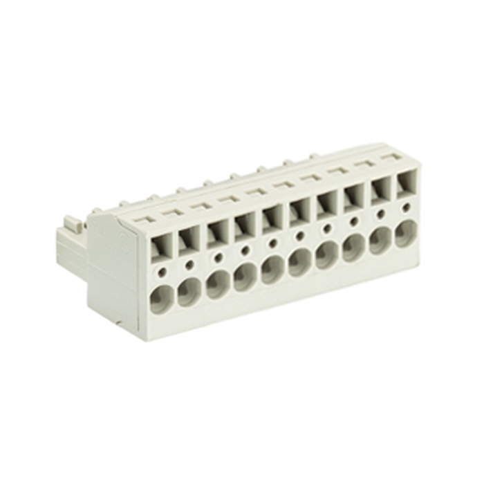 Розеточный разъем, прямой, на кабель, шаг: 3.5 мм, 10 полюсов, фиксация провода пружинная, исполнение: без маркировки, 250V, 8А, цвет: серый