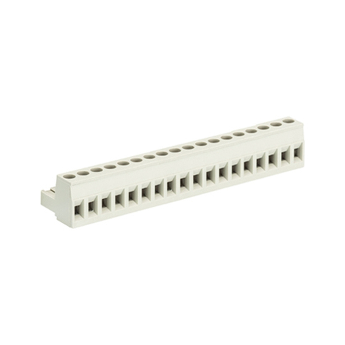 Розеточный разъем, прямой, на кабель, шаг: 5.0 мм, 18 полюсов, фиксация провода винтовая, исполнение: без маркировки, 400V, 12А, цвет: серый