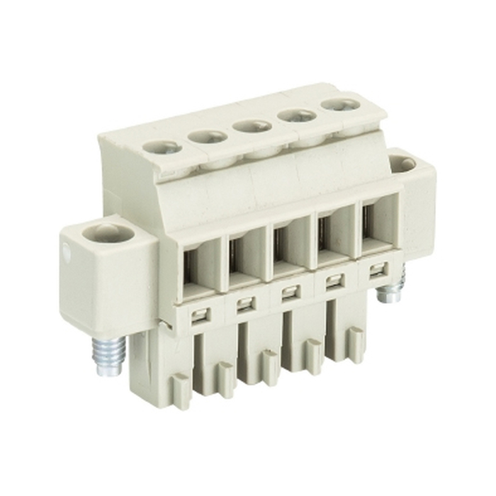Розеточный разъем, прямой, на кабель, шаг: 3.81 мм, 5 полюсов, фиксация провода винтовая, исполнение: без маркировки, 250V, 8А, цвет: серый