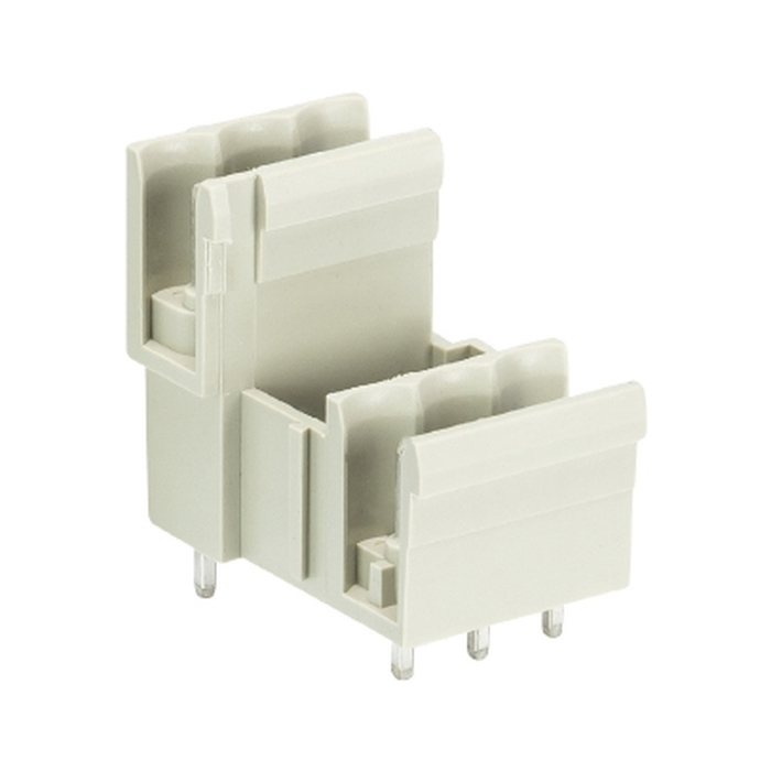 Вилочный разъем, 2 этажа, горизонтальный, на плату, шаг: 5.08 мм, 3 полюса, фиксация на плате пайкой, исполнение: без маркировки, 300V, 10А, цвет: серый