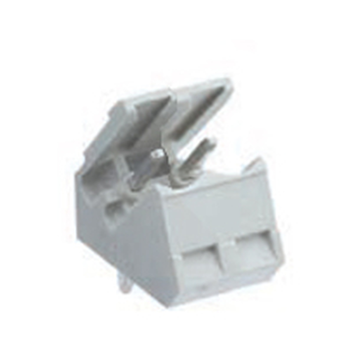Вилочный разъем, угол 45 градусов, на плату, шаг: 5.08 мм, 2 полюса, фиксация на плате пайкой, исполнение: без маркировки, без боковых стенок, 250V, 8А, цвет: серый