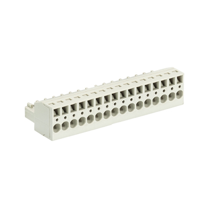 Розеточный разъем, прямой, на кабель, шаг: 3.5 мм, 16 полюсов, фиксация провода пружинная, исполнение: без маркировки, 250V, 8А, цвет: серый