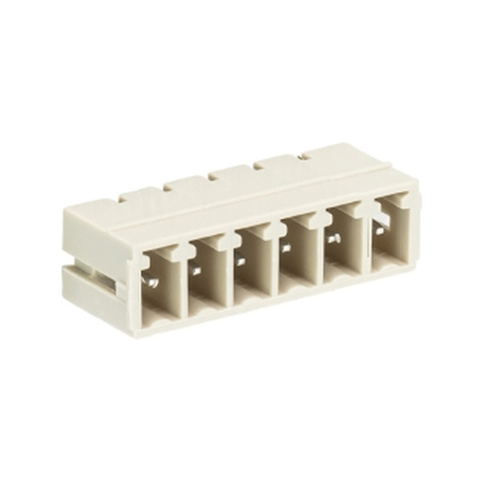 Вилочный разъем, вертикальный, на плату, шаг: 5.08 мм, 6 полюсов, фиксация на плате пайкой, исполнение: без маркировки, без боковых стенок, 400V, 12А, цвет: серый