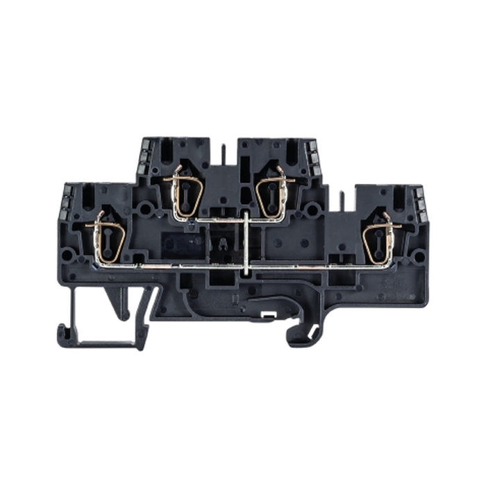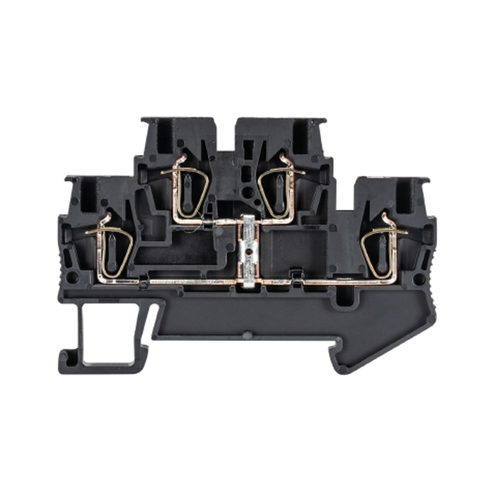 Этажная клемма, 2 этажа, межэтажное соединение, тип фиксации провода: пружинный, номинальное сечение: 1.5 мм кв., 17,5A, 500V, ширина: 4 мм, цвет: черный, тип монтажа: DIN35
