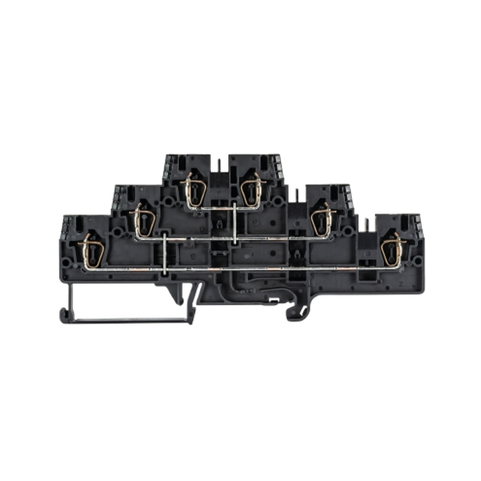 Этажная клемма, 3 этажа, тип фиксации провода: пружинный, номинальное сечение: 2,5 мм кв., 20A, 500V, ширина: 5 мм, цвет: черный, тип монтажа: DIN35