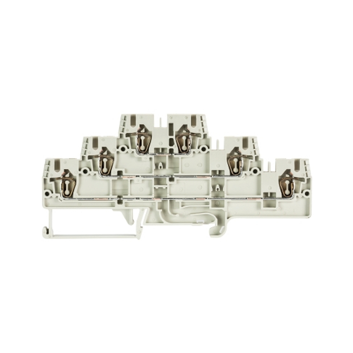 Этажная клемма, 3 этажа, для подключения эл.двигателя, тип фиксации провода: пружинный, номинальное сечение: 4 мм кв., 28A, 800V, ширина: 6 мм, цвет: серый, тип монтажа: DIN35