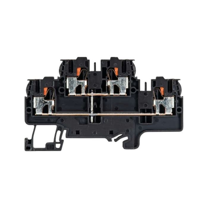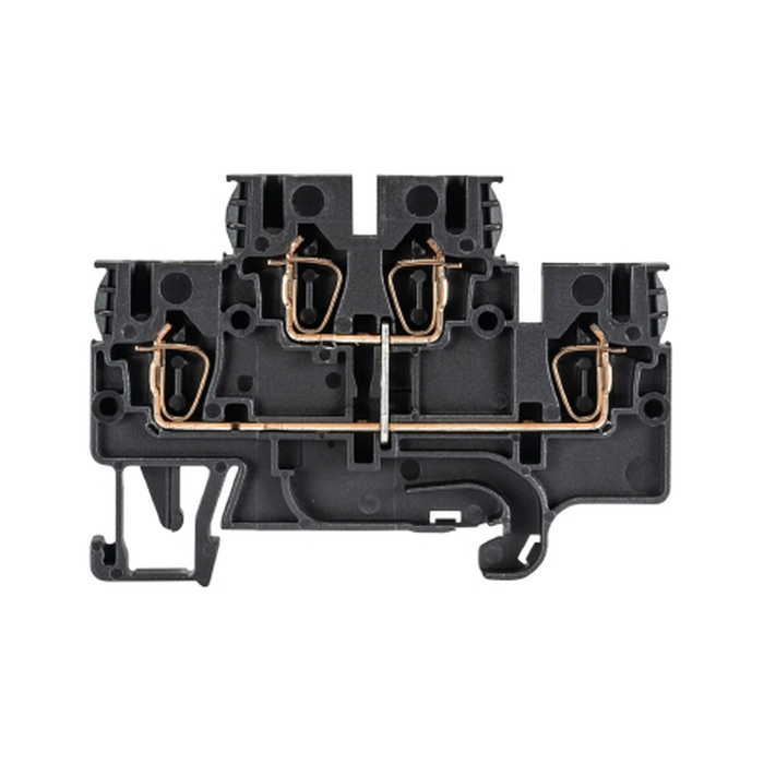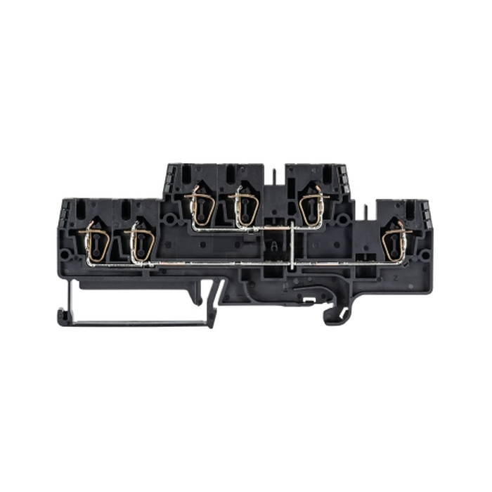 Этажная клемма, 2 этажа, тип фиксации провода: пружинный, номинальное сечение: 4 мм кв., 32A, 500V, ширина: 6 мм, цвет: черный, тип монтажа: DIN35