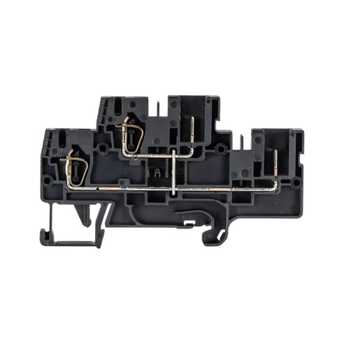 Этажная клемма, 2 этажа, для подключения разъема, тип фиксации провода: пружинный, номинальное сечение: 2,5 мм кв., 32A, 500V, ширина: 5 мм, цвет: черный, тип монтажа: DIN35