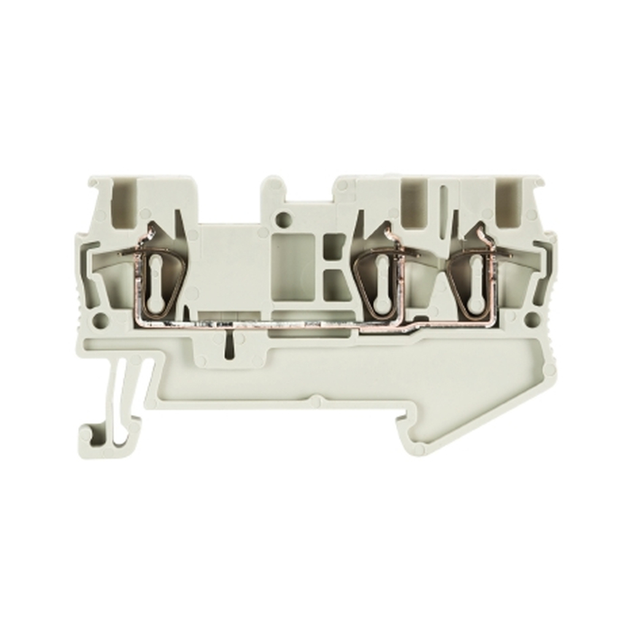 Проходная клемма, 3 точки подключения, тип фиксации провода: пружинный, номинальное сечение: 4 мм кв., 32A, 800V, ширина: 6 мм, цвет: серый, тип монтажа: DIN35