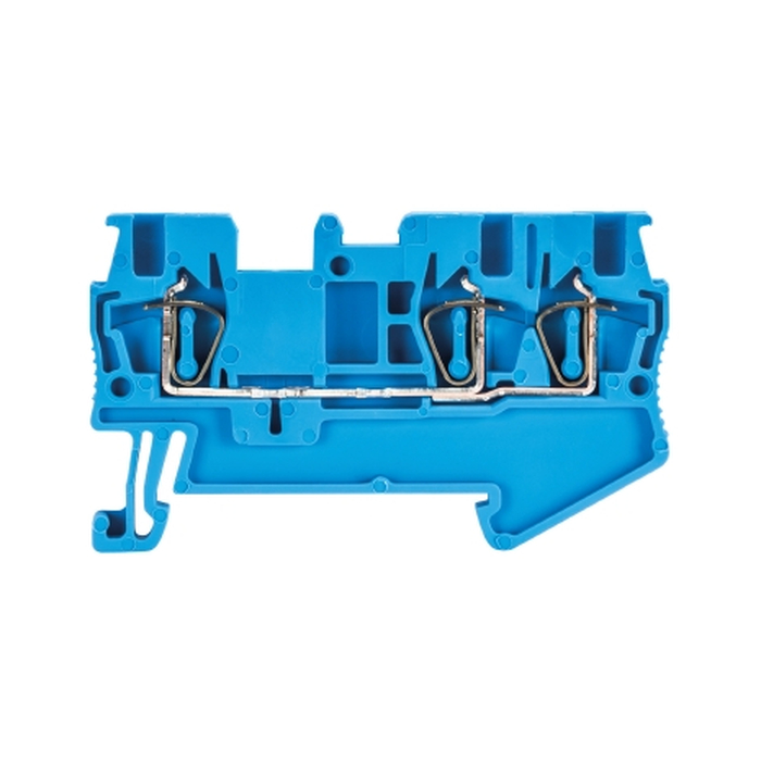 Проходная клемма, 3 точки подключения, тип фиксации провода: пружинный, номинальное сечение: 4 мм кв., 32A, 800V, ширина: 6 мм, цвет: синий, тип монтажа: DIN35