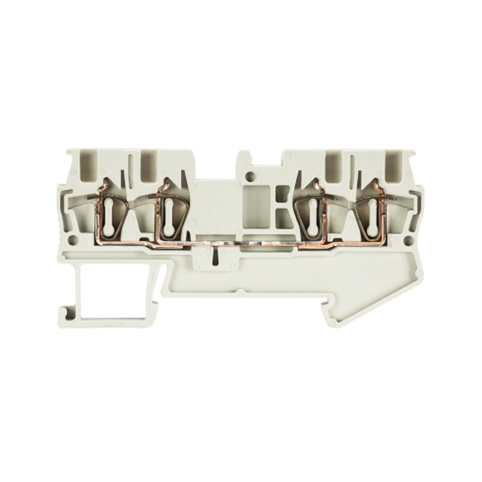 Проходная клемма, 4 точки подключения, тип фиксации провода: пружинный, номинальное сечение: 1.5 мм кв., 17,5A, 500V, ширина: 4 мм, цвет: серый, тип монтажа: DIN35