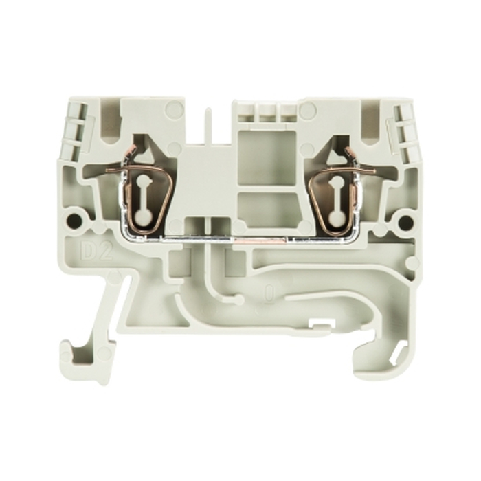 Проходная клемма, тип фиксации провода: пружинный, номинальное сечение: 2,5 мм кв., 24A, 800V, ширина: 5 мм, цвет: серый, тип монтажа: DIN35