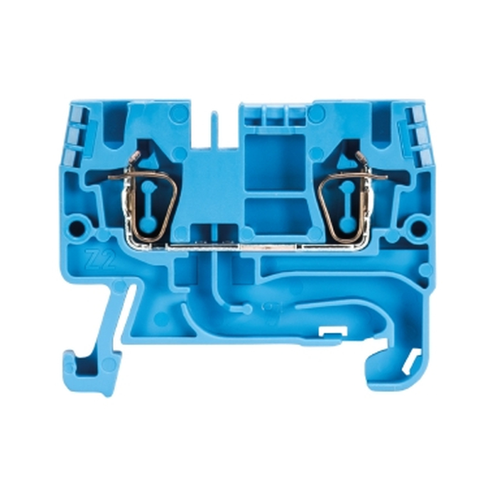 Проходная клемма, тип фиксации провода: пружинный, номинальное сечение: 2,5 мм кв., 24A, 800V, ширина: 5 мм, цвет: синий, тип монтажа: DIN35