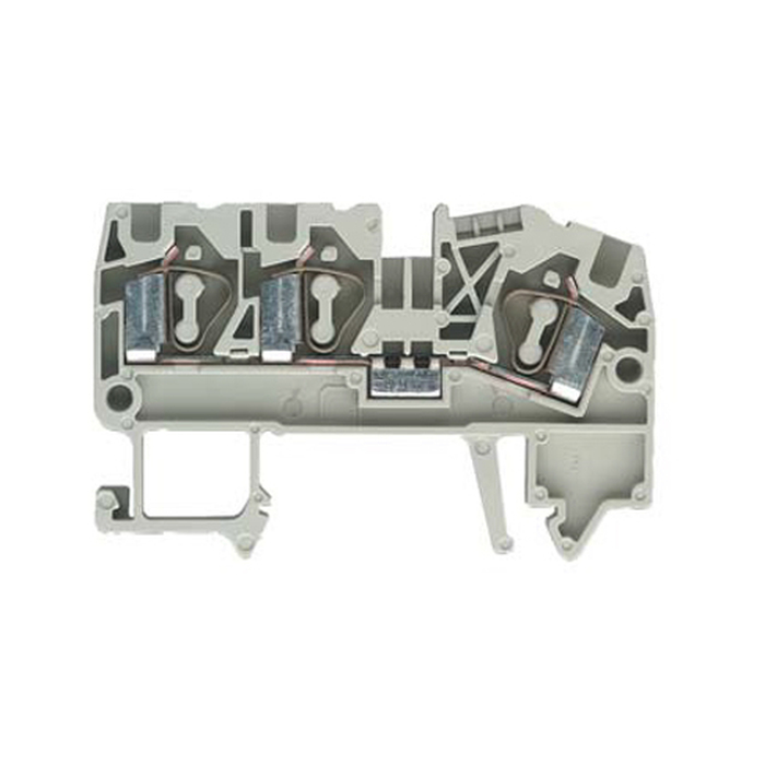 Проходная клемма, 3 точки подключения, тип фиксации провода: пружинный, номинальное сечение: 1.5 мм кв., 17,5A, 500V, ширина: 4 мм, цвет: серый, тип монтажа: DIN35