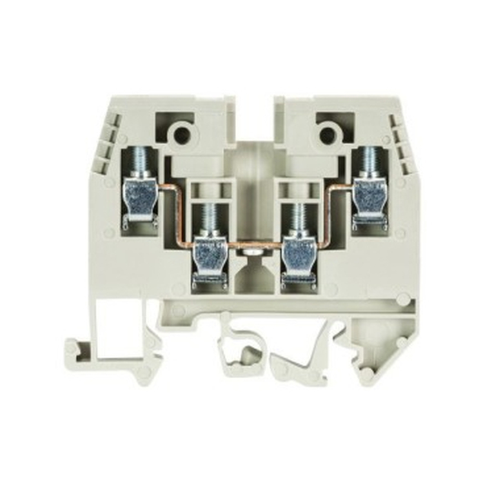 Проходная клемма, 4 точки подключения, тип фиксации провода: винтовой, номинальное сечение: 4 мм кв., 32A, 500V, ширина: 6 мм, цвет: серый, тип монтажа: DIN35