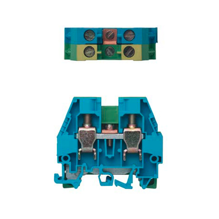Клеммная сборка из 2 клемм: WKI16PE, WKI16N, тип фиксации провода: винтовой, номинальное сечение: 16 мм кв., 76A, 400V, цвет: синий/желто-зеленый, тип монтажа: DIN35