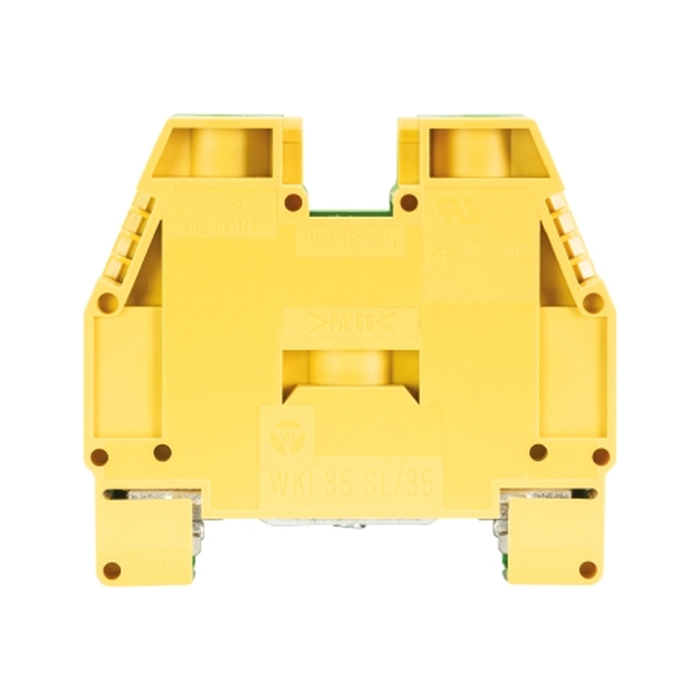 Заземляющая клемма, тип фиксации провода: винтовой, номинальное сечение: 70 мм кв., 800V, ширина: 24 мм, цвет: желто-зеленый, тип монтажа: DIN35