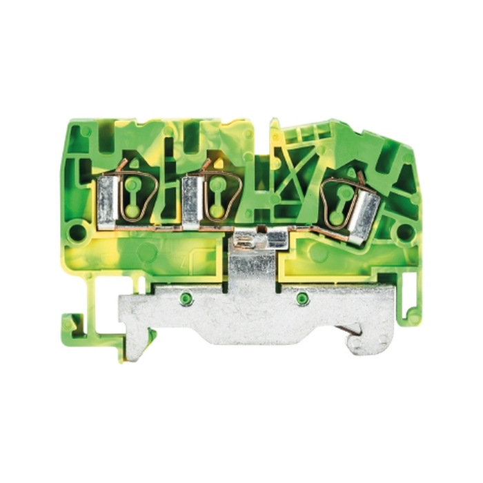 Заземляющая этажная клемма, 2 этажа, тип фиксации провода: push-in, номинальное сечение: 2,5 мм кв., 500V, цвет: желто-зеленый, тип монтажа: DIN35
