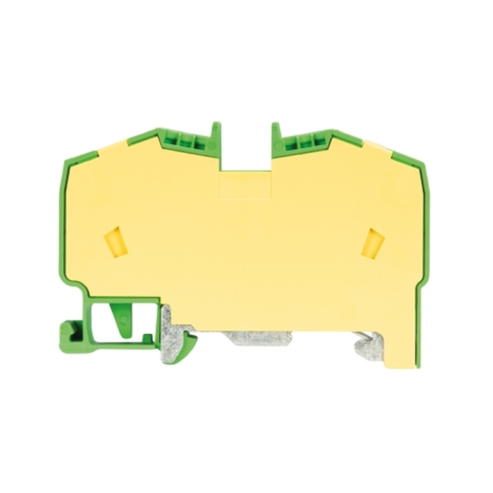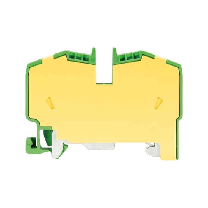 Заземляющая клемма, тип фиксации провода: пружинный, номинальное сечение: 4 мм кв., 32A, 800V, ширина: 6 мм, цвет: желто-зеленый, тип монтажа: DIN35
