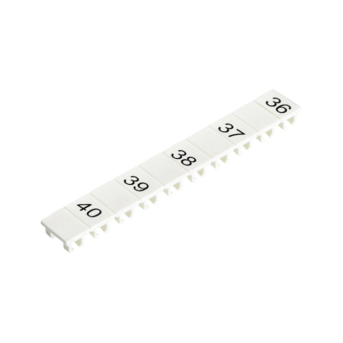 Маркировочные шильдики, для клемм сечением 4 мм.кв., боковая / верхняя, 10 шильдиков, нанесенные символы: 36, пробел,37, ,38, ,39, ,40, с горизонтальным расположением, размер шильдика: 5,75 x 8,3 мм, цвет: белый
