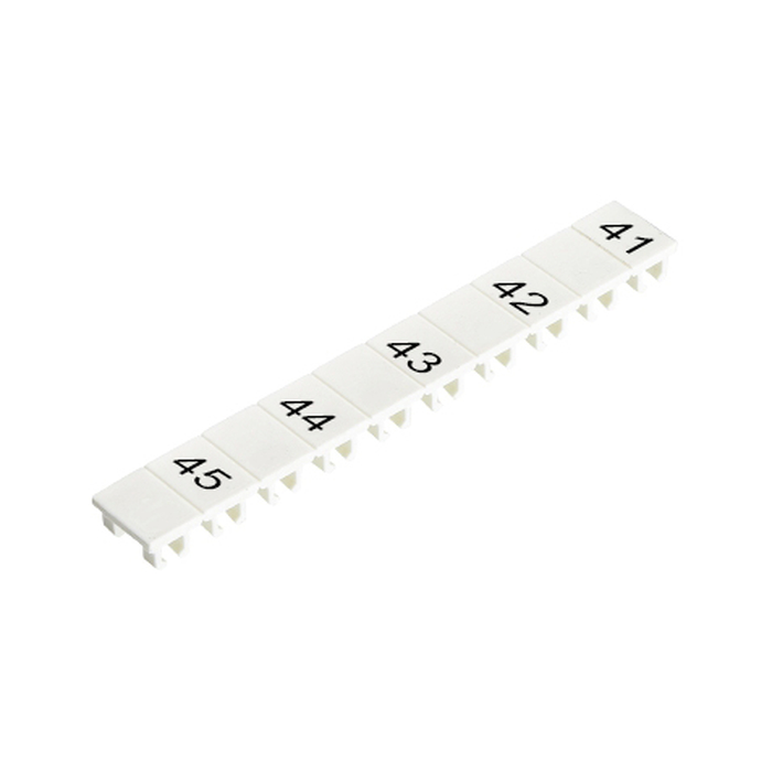 Маркировочные шильдики, для клемм сечением 2,5 мм.кв., боковая / верхняя, 10 шильдиков, нанесенные символы: 41, пробел,42, ,43, ,44, ,45, с горизонтальным расположением, размер шильдика: 4,8 x 8,3 мм, цвет: белый